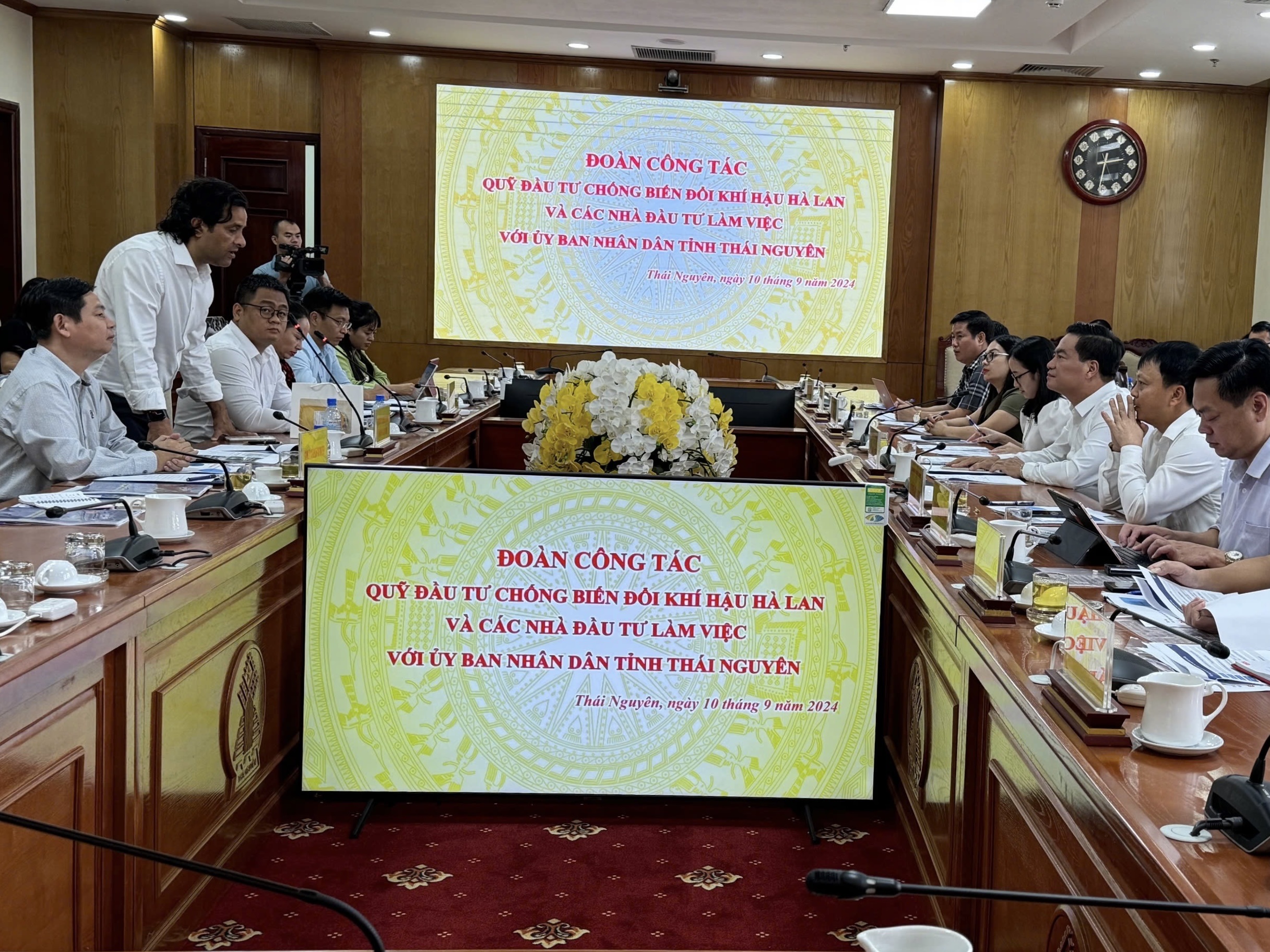 Chiều ngày 10/9/2024, Công ty Cổ Phần CA Water và Đại diện Quỹ đầu tư chống biến đổi khí hậu Hà Lan (CFM) đã làm việc với lãnh đạo tỉnh Thái Nguyên, trao đổi về một số nội dung hợp tác. Tham dự buổi làm việc có lãnh đạo các sở, ngành của tỉnh; lãnh đạo UBND TP. Phổ Yên, TP. Sông Công.